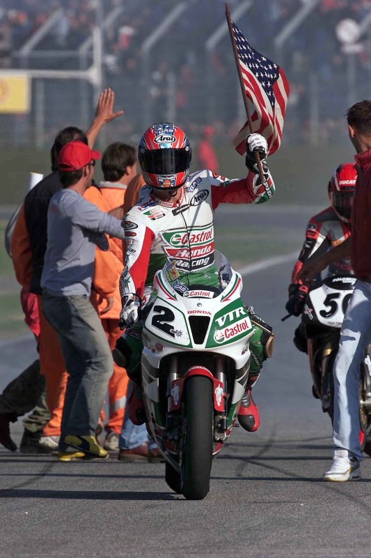 Estamos em 1999 e a Ducati conquistou oito dos últimos 12 títulos de pilotos do Campeonato Mundial de Superbike (WSBK). Durante a década anterior, suas máquinas exclusivas com motor V-twin provaram ser uma força dominante em um campo povoado por V-fours e quatros em linha. Hondapor outro lado, com seus reputação de excelência em engenharia e lendária herança do automobilismo, lutaram para se igualar aos italianos. A moto de corrida Honda RC45, movida por um motor V-quatro de 750 cc, era uma excelente máquina por si só, mas teve dificuldades para competir com as Ducati V-twins de maior capacidade. Maior capacidade porque os regulamentos do WSBK da época limitavam o deslocamento em 750 cc para motores de quatro cilindros, enquanto os gêmeos eram permitidos até 1.000 cc.